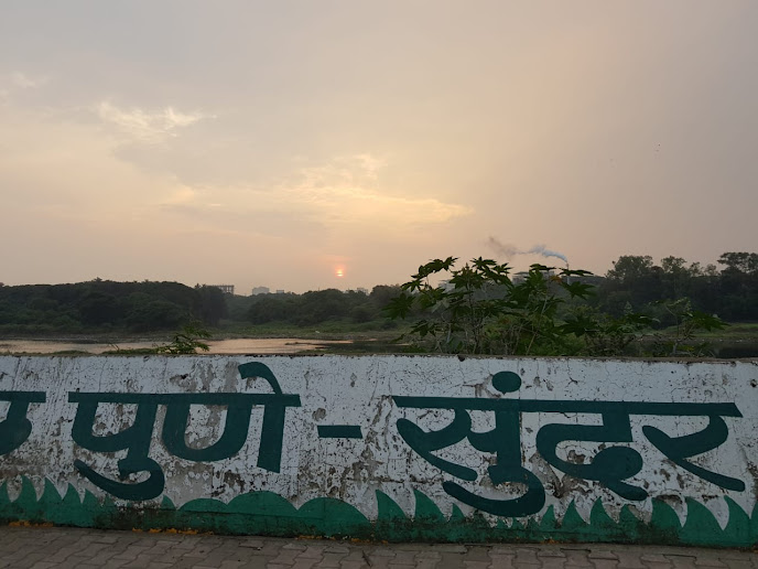 Ramesh Mirakhur walked with us till Sancheti (total about 10 km from start) and then he turned back. We felt very encouraged by Shashank, Ramesh and Kedar’s participation. From Sancheti Hospital, we turned towards Sangamwadi bridge and saw a beautiful sunrise.