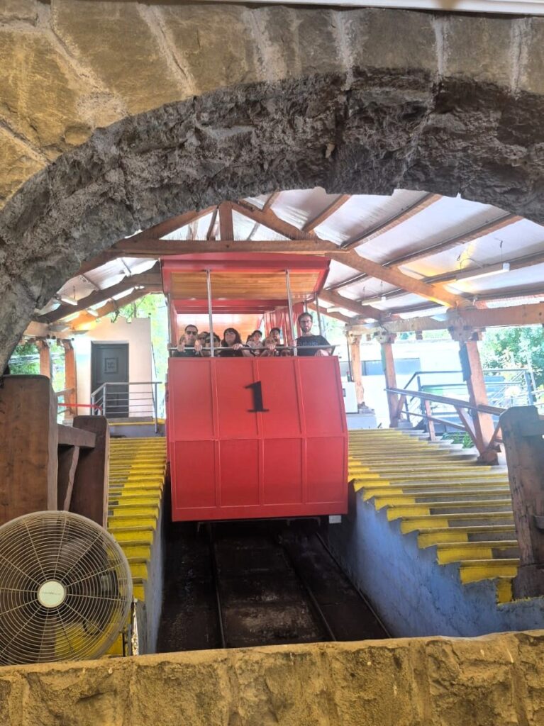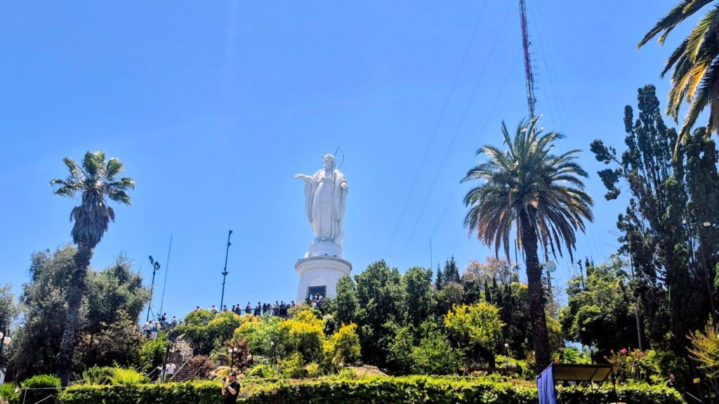 After lunch, we proceeded to the Pío Nono Funicular Station in the Bellavista area to visit San Cristóbal Hill, which rises about 1,000 ft above the rest of Santiago. It provides amazing views of the city and is a must-visit location in Santiago.