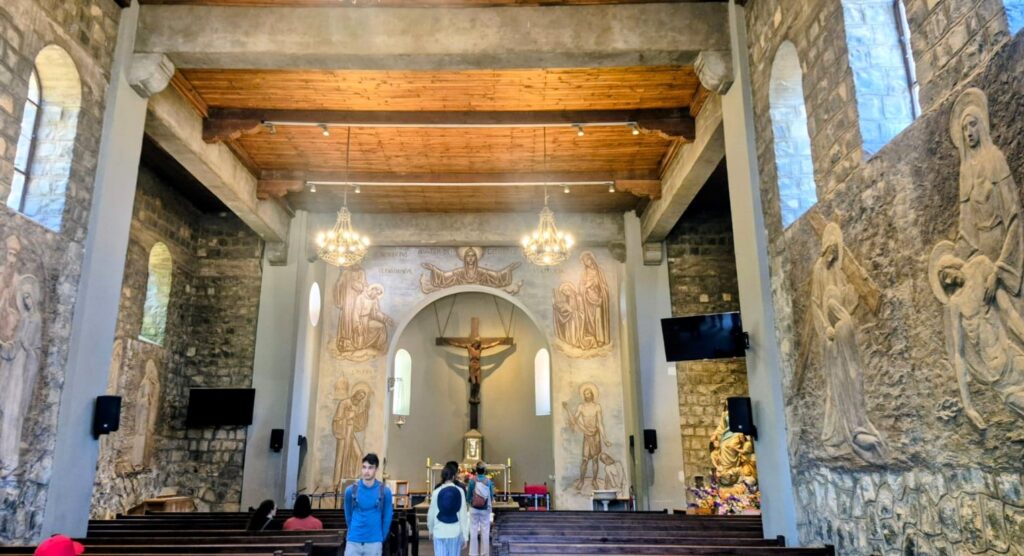 At the summit, there is a sanctuary dedicated to the Immaculate Conception, featuring a large statue of the Blessed Virgin Mary, along with an amphitheater and a chapel.