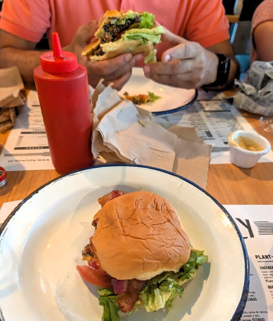 The burgers were quite substantial and very tasty, and they also had vegetarian burger options.
