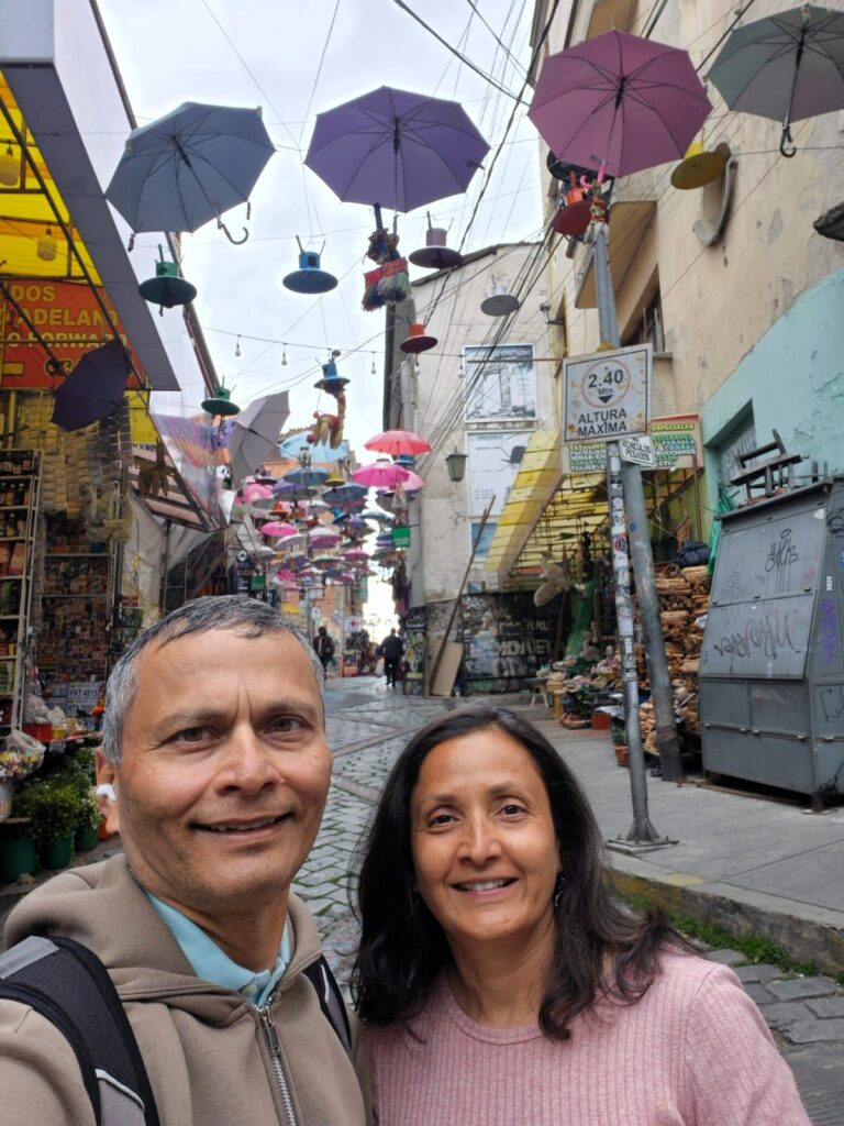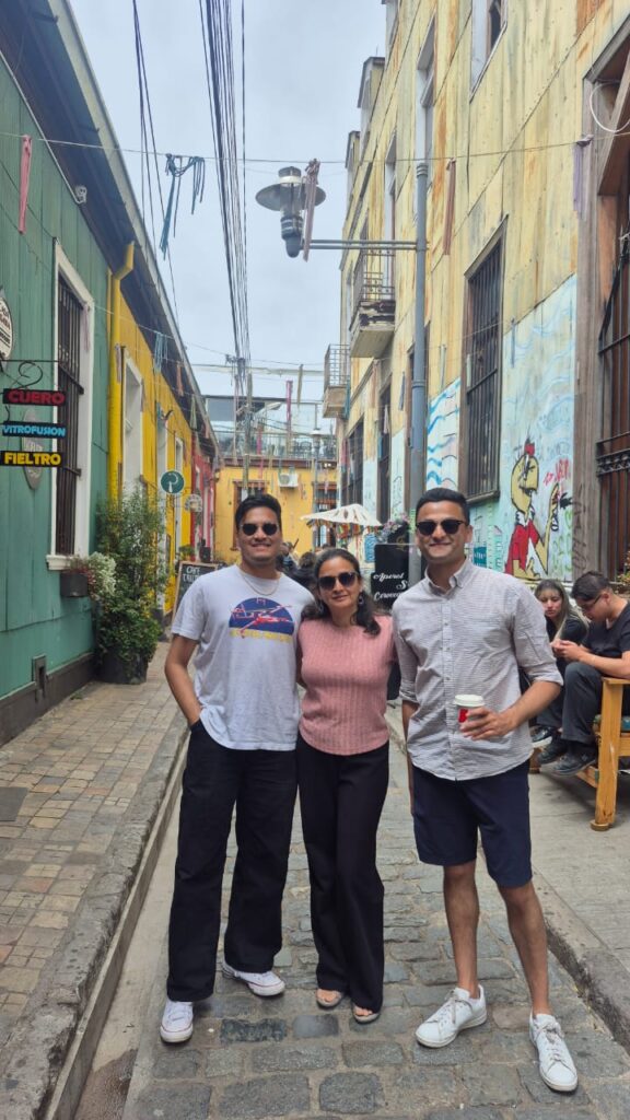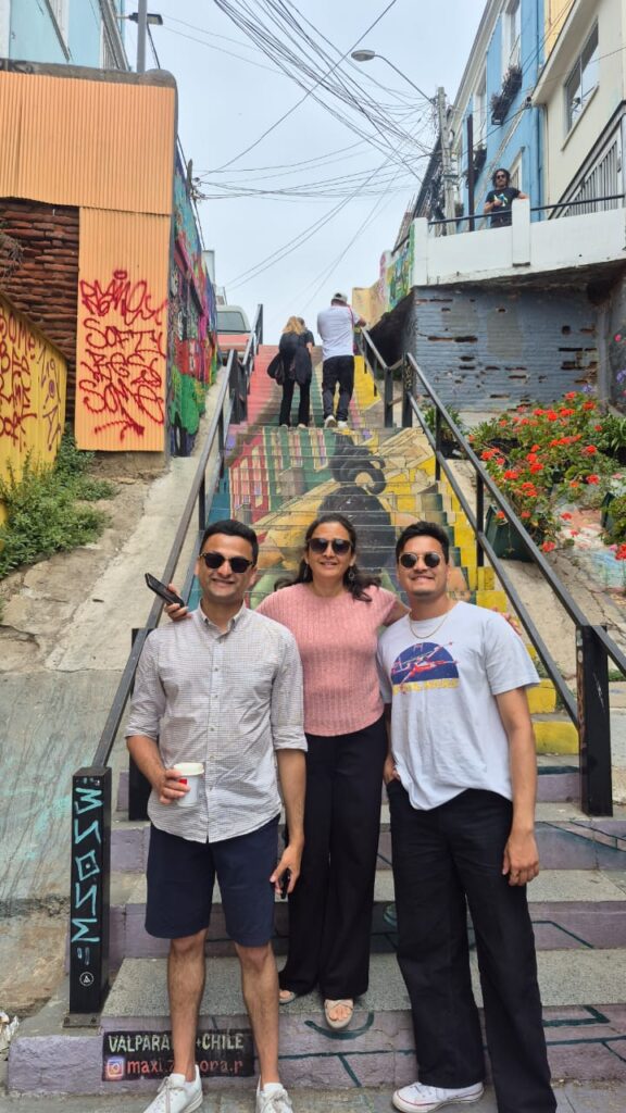 We flew from Mumbai via Frankfurt and Houston. We spent the day exploring Santiago.