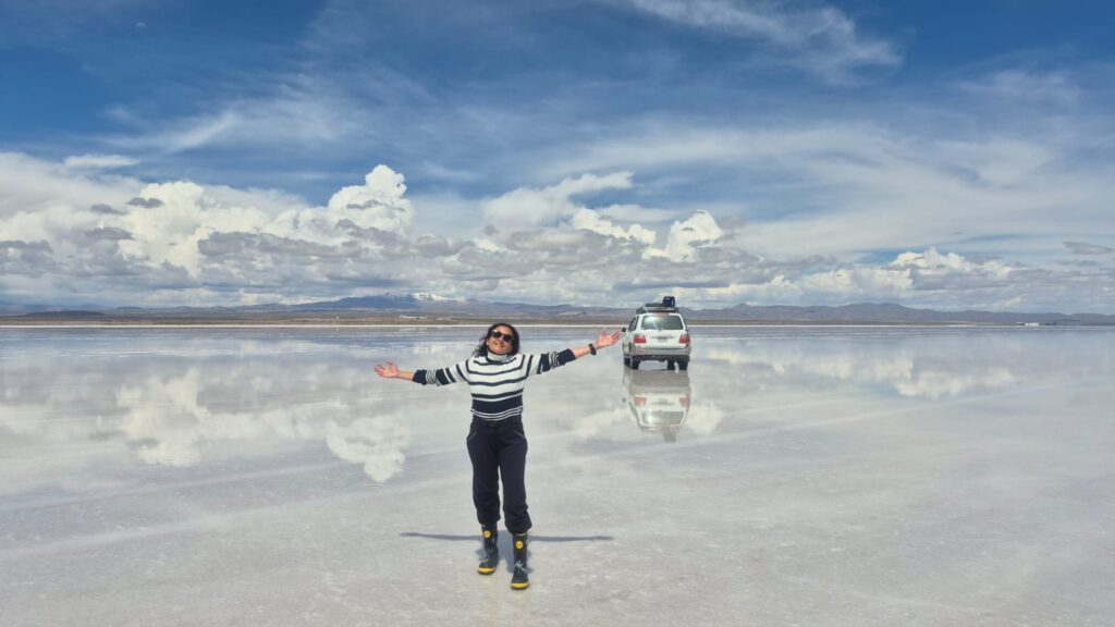 Imagine walking on a 10,000 sq km reflecting mirror. Imagine walking on the surface of a vast lake. That is exactly what the Uyuni Salt Flats experience felt like!