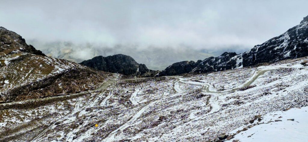 Chacaltaya Peak is about a two-hour drive from La Paz. Our vehicle took us along a winding, unpaved mountain road toward the peak.