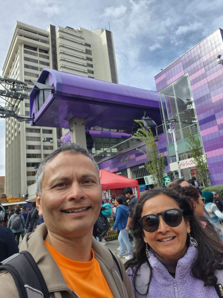 For a mountainous city like La Paz, this is a very practical solution and helps people avoid traffic. A single ride costs 3 bolivianos (about 30 rupees). We went to Estación Mirador, which offers amazing views of La Paz.