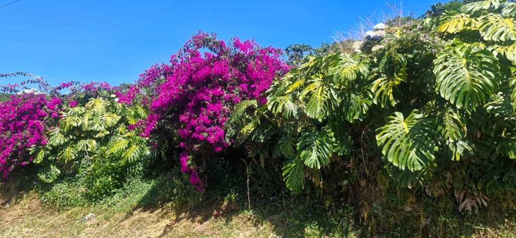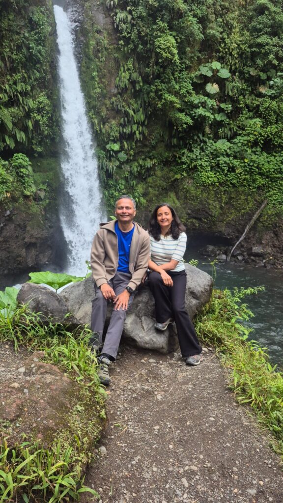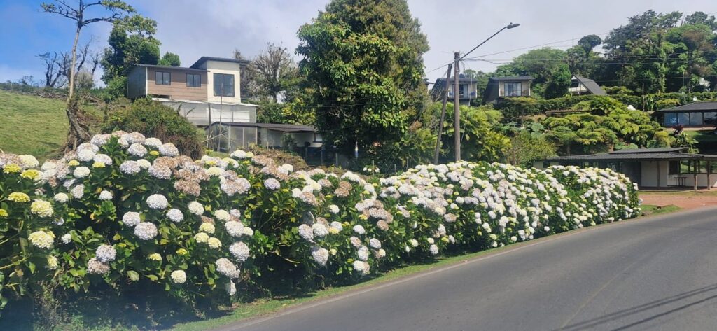 From there, we drove toward our next attraction — the waterfalls. We had heard a lot about La Paz Waterfall Gardens. Along the road, we enjoyed beautiful scenery and flowers.