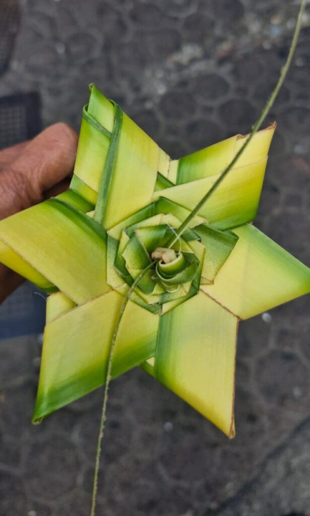 As we walked toward our Uber pickup point, we spotted a person making artwork out of palm tree leaves — very creative!