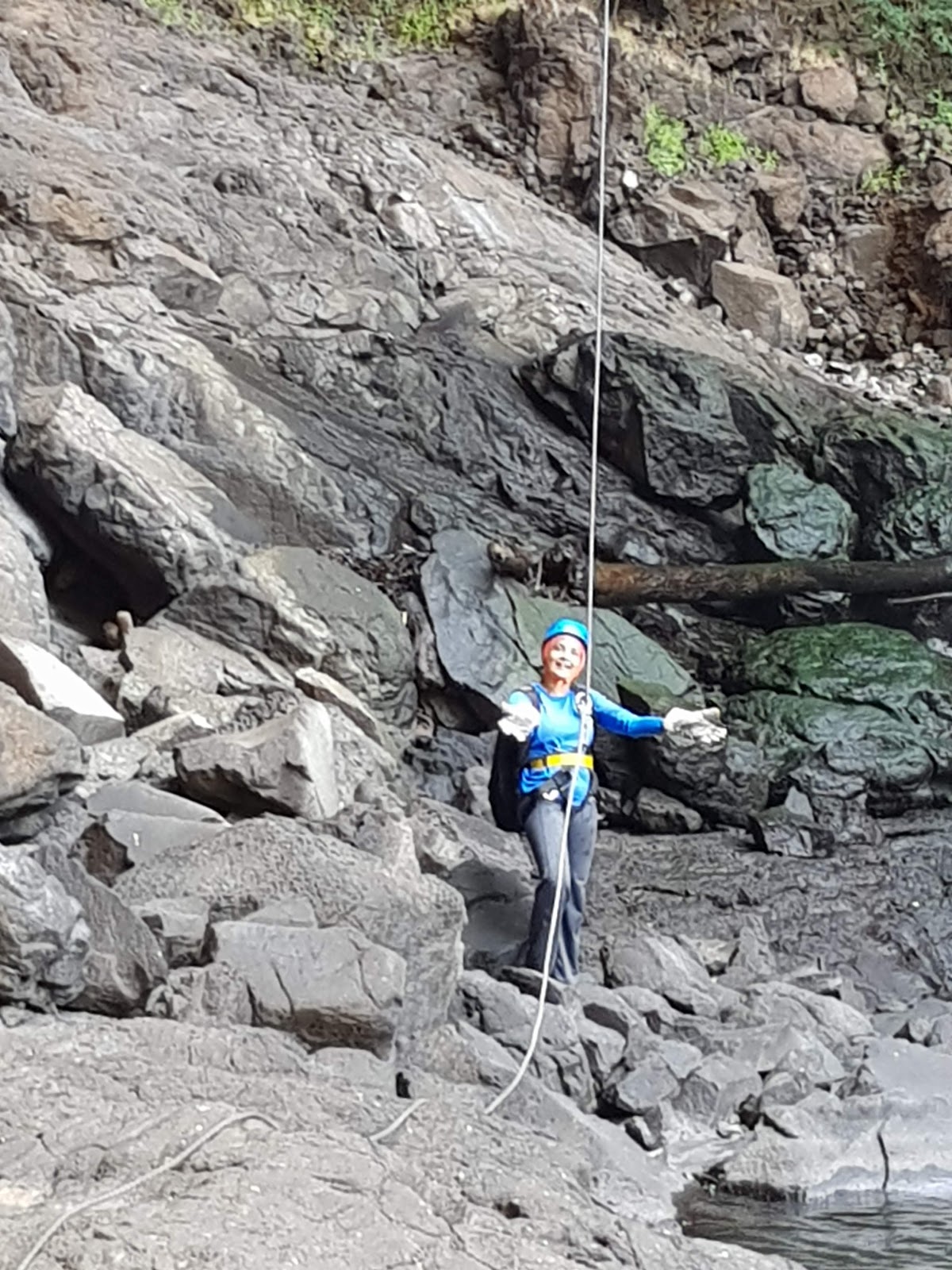 There were two stages in which we rappelled. The first stage was a cliff about 150 ft tall.