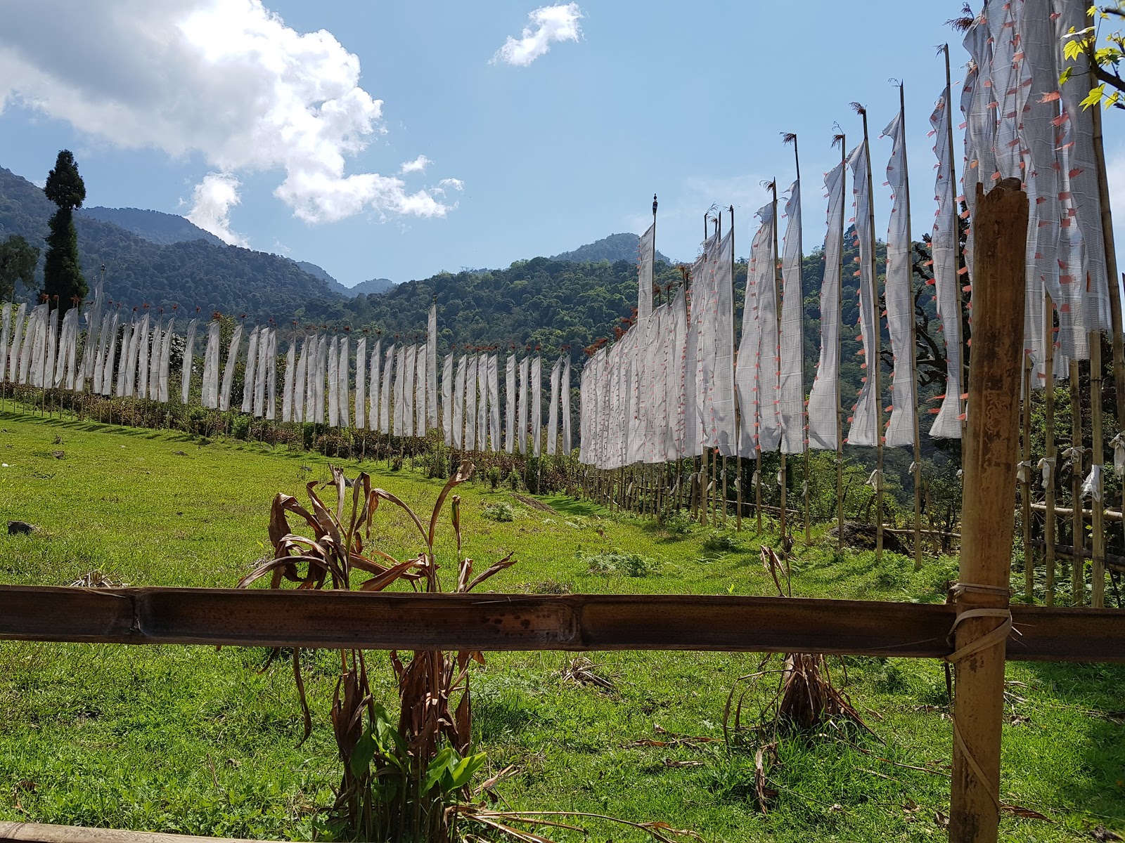 Flags planted by the the people of Sikkim in Yuksom to celebrate the coronation of their king.