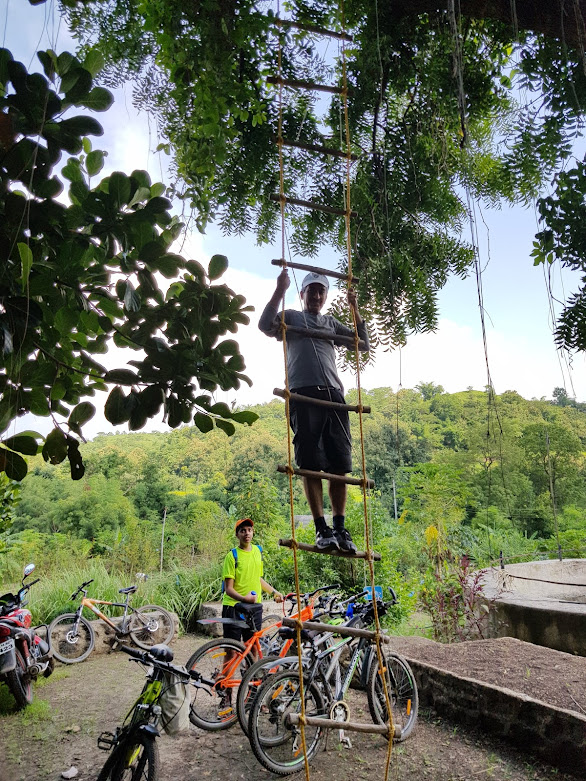 Some of the group members tried scaling the rope ladder tied to the tree. It is not as simple as it seems.